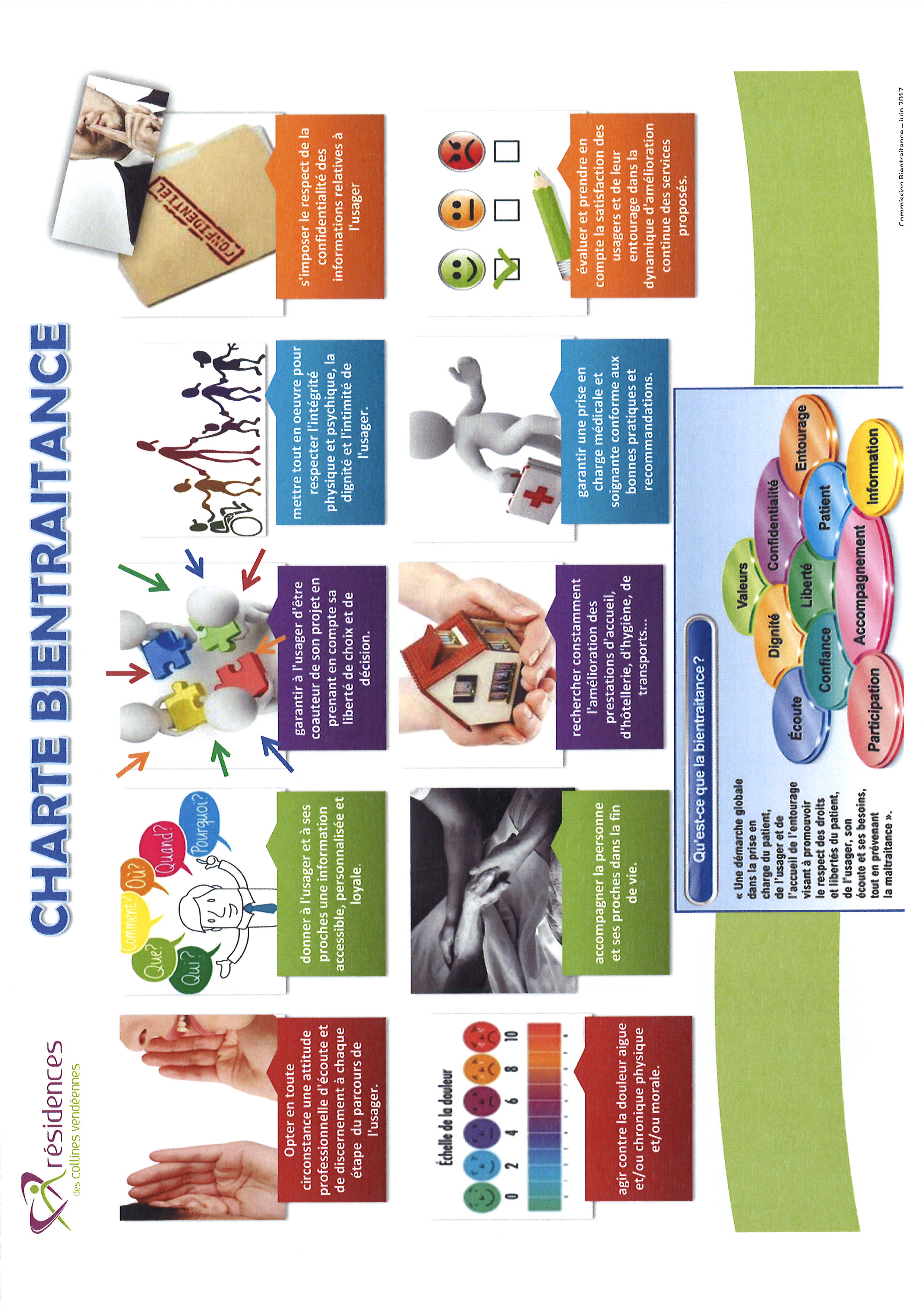 Les principes généraux contenus dans la charte sont affichés dans toutes les chambres et circulations.